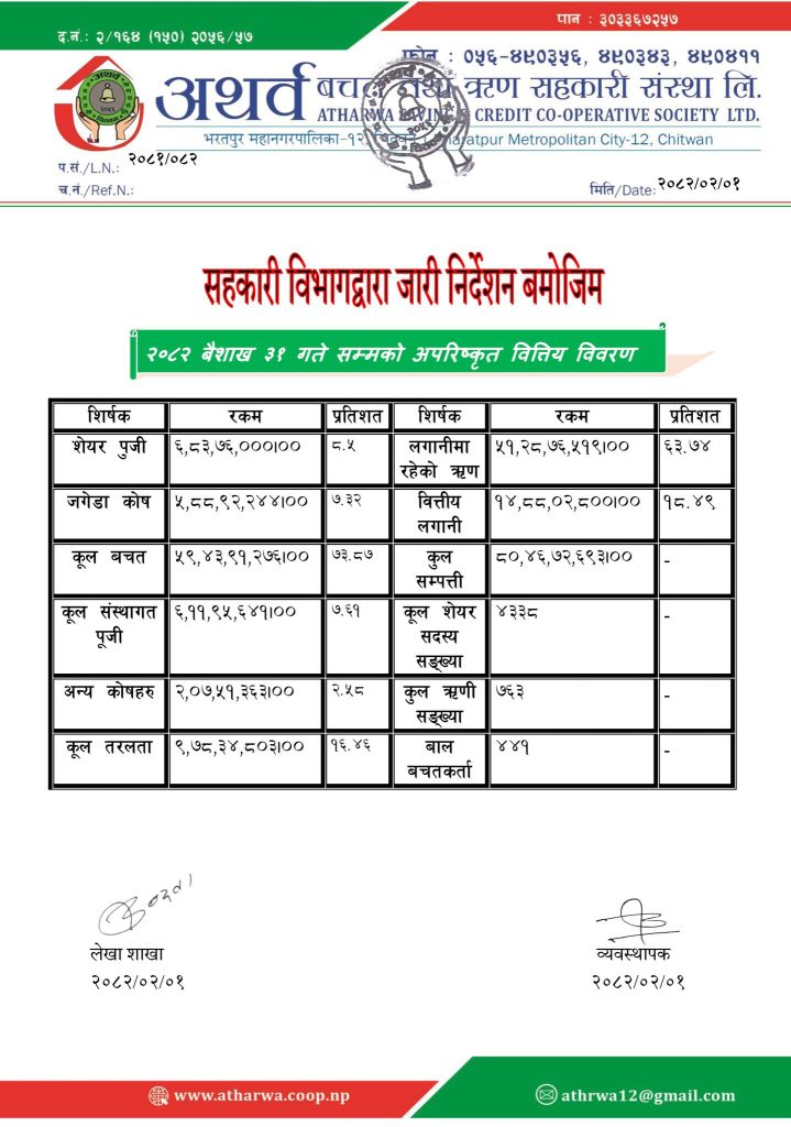 २०८२ बैशाख ३१ गते सम्मको बित्तिय विवरण ।